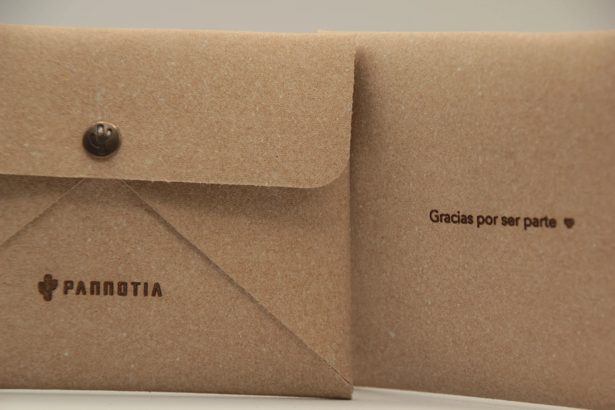 Utilizamos el mismo cuero reciclado para nuestro packaging. Cada Pannotia viene guardada dentro de un sobre de cuero de reciclado en crudo que se puede reutilizar para guardar cartas, documentos, notas… De esta manera, eliminamos el uso de plásticos y cartón con el objetivo de ser lo más éticos y sostenibles posibles.